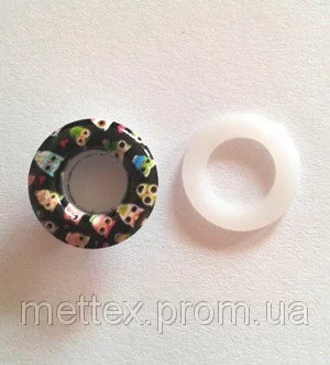 Блочка (люверс) 8 мм эмаль с рисунком № 1 с пластиковым кольцом