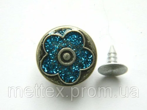 Джинсовая пуговица НЕРЖ № 5 / 17 мм - бл никель цветочек синий