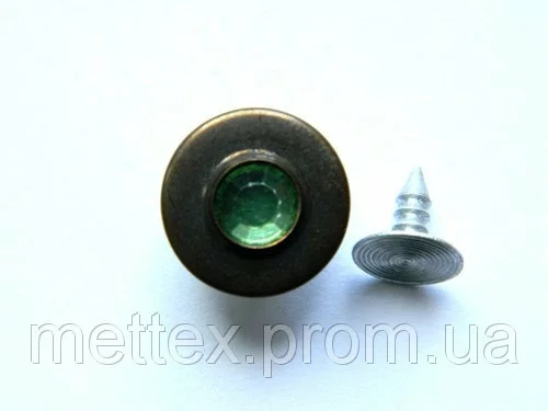 Джинсовая пуговица НЕРЖ № 6 / 14 мм - антик камень зеленый