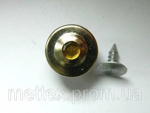 Джинсовая пуговица НЕРЖ № 6 / 14 мм - никель камень желтый